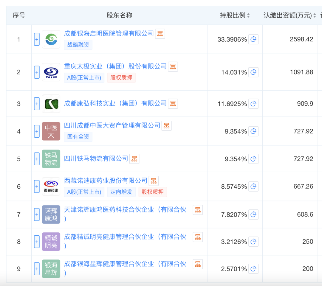 成都中医大银海眼科医院股份有限公司股权构成,图源天眼查