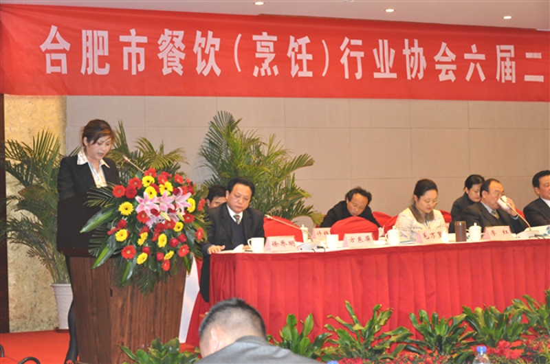 近日,合肥市餐饮(烹饪)行业协会六届二次会员大会如期召开,上百家餐饮企业老总汇聚一堂。合肥市副市长李红、人大常委会副主任杜昌寿、省烹饪协会会长徐炎、市餐饮协会会长周富如莅临大会并发表重要讲话,市政府办公厅副主任徐乔明主持会议。协会副会长、黄山大厦酒店管理有限公司副总经理郑群在会上交流了黄山大厦餐饮经营的成功经验。
