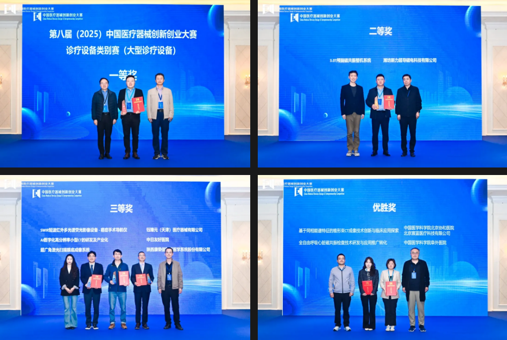 本场诊疗设备类别赛(大型诊疗设备)评选出了一等奖1名、二等奖1名、三等奖3名、优胜奖2名。
