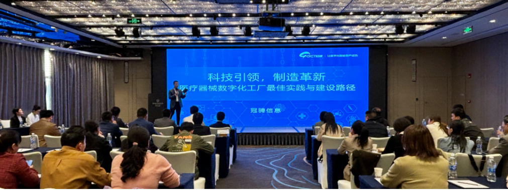 会议期间,冠骋信息副总经理深入剖析了医疗器械企业数字化转型的必要性。随着产业规模快速增长和国产替代进程加快,企业面临着集采导致的利润压缩、成本控制压力加剧、国内外法规监管日益严苛等压力与挑战。与此同时, AI 技术在各行业掀起了变革浪潮,使得医疗器械行业的数智化转型从 “可选题” 转变为当下的 “必选题” ,成为企业提升生产效率、降低成本、保障合规经营的关键路径。