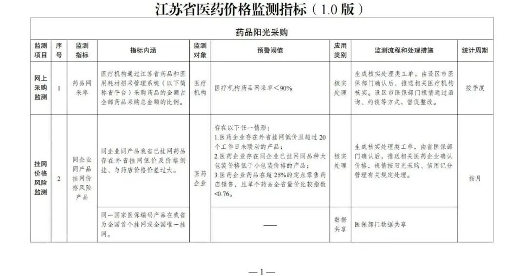 《江苏省医药价格监测指标(1.0版)》(简称《指标》完整附文末),
