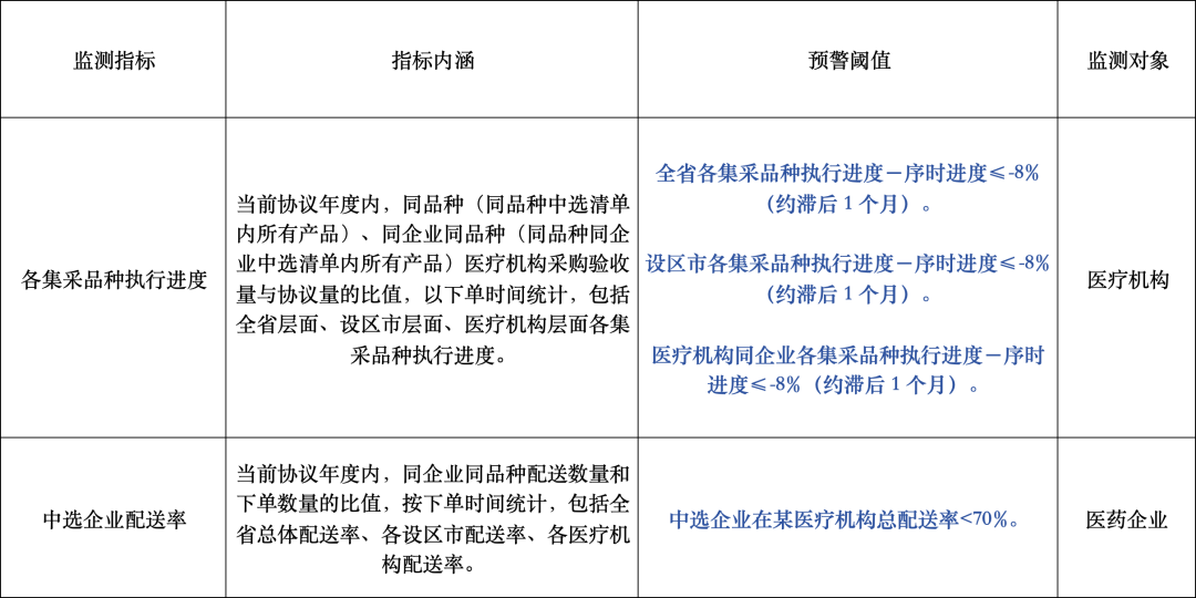 在带量采购部分,针对执行阶段的监测再度细化,其中包括