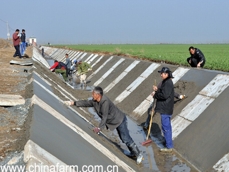 12月13日,在安徽农垦潘村湖农场四分场,施工人员正在衬砌沟渠。作为安徽省现代农业示范农场,该场抓住实施农业综合开发项目的机遇,对沟渠田林路进行高起点规划、高标准施工,项目完成后,农场3.2万亩农田抗灾减灾能力将得以大幅提升。(杨登宏)