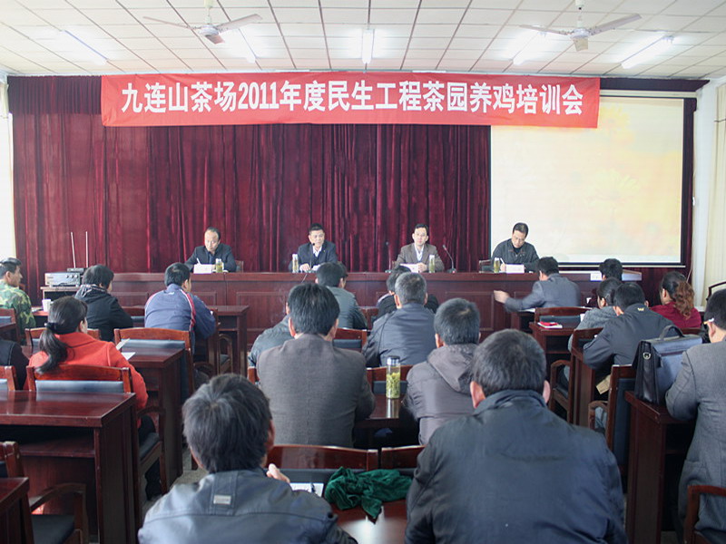 11月24日,省农垦九连山茶场举行民生工程茶园养鸡培训会,邀请安徽农业大学教授王桂军、省农垦集团高级畜牧师张毅宾前来授课。培训会由该场场长宗志贵主持,皖垦九连山、敬亭山、十字铺三个茶场的茶园养鸡户及部分管理人员接受培训。