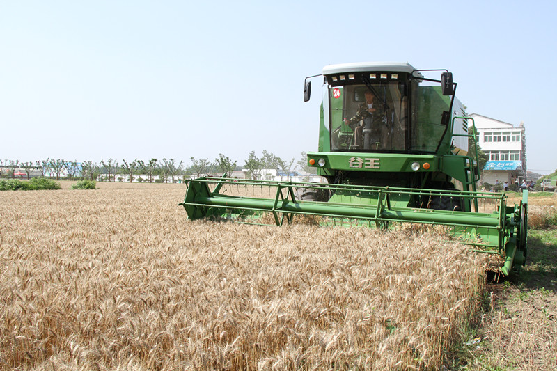 在芜湖去年12月举行的授牌仪式上,龙亢农场获得奇瑞重工首批农机化试验示范基地,今年,奇瑞公司派出农机新产品“谷王8000A”支援龙亢农场午收,该新型农机采用双纵轴流式脱粒滚筒的独特设计,喂入量达到8公斤/秒,且籽粒内部损失小、破碎率低、清选干净、经济高效,还可以选配6-8行玉米割台、4.6米刚性割台和5.4米挠性割台,轻松实现了小麦、水稻、玉米、大豆等主要农作物的广谱收割。
