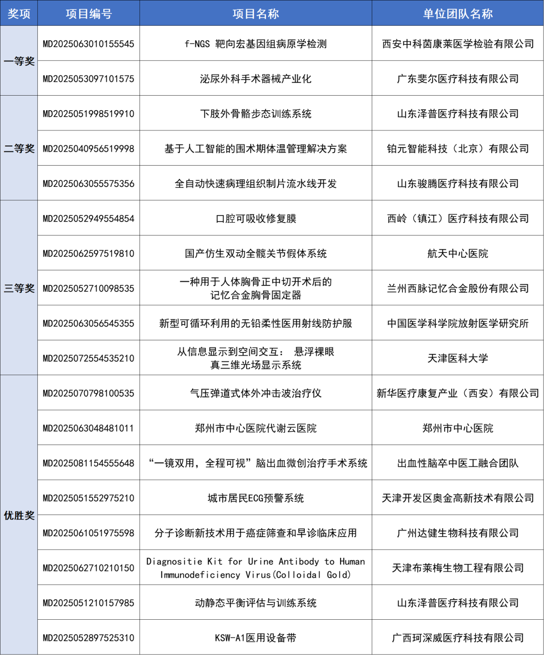 历经两天的激烈角逐,在天津东丽区进行的中国医疗器械创新网创业大赛五场核心赛事的结果已全部揭晓,具体获奖名单如下。